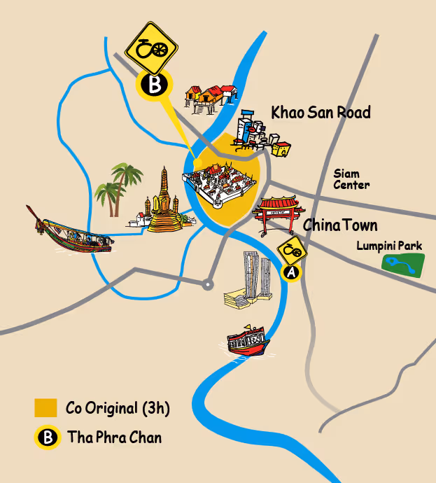 Along the way, relish authentic local flavors, savoring snacks from family-owned stalls and refreshing drinks from neighborhood shops, infusing your journey with the true essence of Bangkok's community spirit. Finally, pedal back to our starting point along the riverfront, passing by familiar city highlights that take on a new light in the context of their geographical locations.