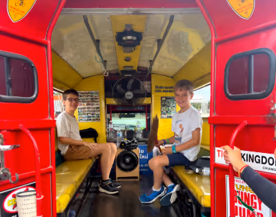 With full hearts and rested legs, we meander further through quiet lanes and open landscapes, before the red songthaew carries us gently back toward the city.