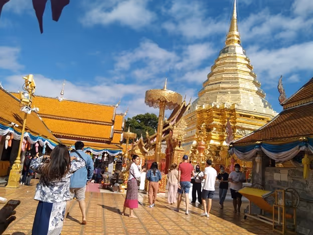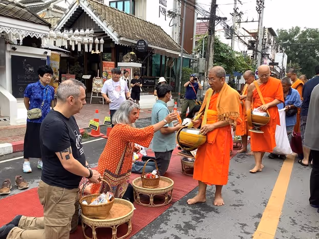Experience Chiang Mai like a local with a songthaew (local red truck) ride to Kad Ton Payom market, followed by joining the serene Buddhist alms-giving ritual. Visit the iconic Wat Phra That Doi Suthep for panoramic city views. Explore the tranquil, 700-year-old Wat Umong after this with its ancient tunnels and forest setting. Before saying goodbye to your guide and driver, they will drop you off in Chiang Mai to enjoy lunch on own.