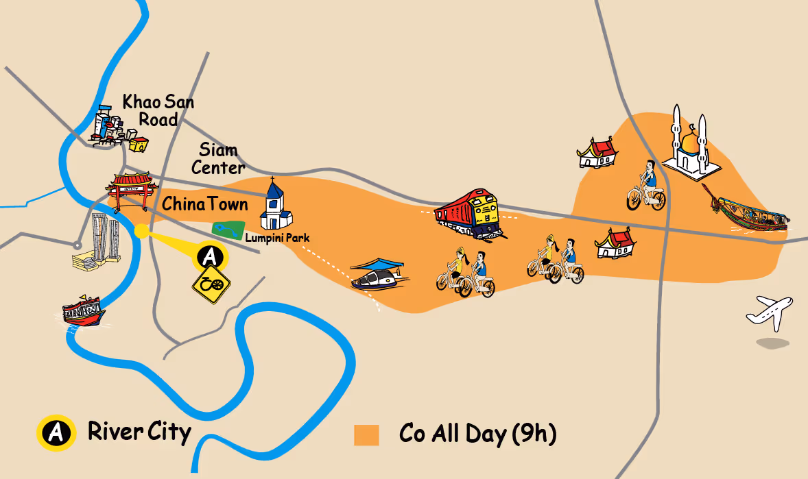 Co van Kessel Bangkok Tours bietet dieses Erlebnis von unserem Büro in River City Bangkok aus an. Sie finden uns im Erdgeschoss (Außeneingang des Einkaufszentrums) rechts vom Haupteingang des Einkaufszentrums.
