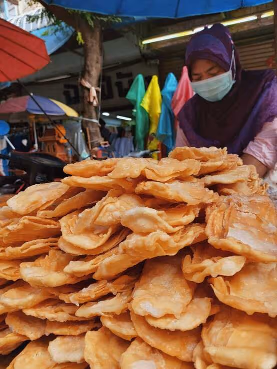 Nous dégusterons plusieurs types d'en-cas de cuisine de rue le long de la route, sans menu fixe, et nous nous laisserons tenter par un repas thaïlandais de style local. Si vous avez des restrictions alimentaires, veuillez en informer votre guide avant le début de l'excursion.