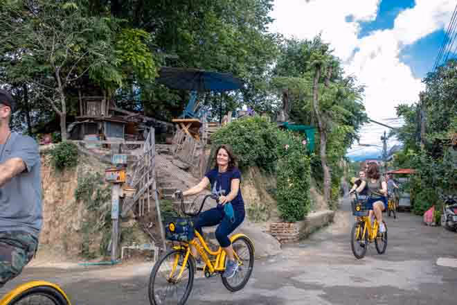 Als je je buiten de beroemde stadsmuren begeeft, zul je versteld staan van hoe de "Roos van het Noorden" zijn andere, tragere levenstempo laat zien. Vriendelijke inwoners begroeten ons en laten de legendarische gastvrijheid van Chiangmai zien. Hilltribe gemeenschappen die zich buiten de muren hebben gevestigd hebben hun ambachtelijke vaardigheden meegebracht en gaan over tot de orde van de dag terwijl wij op onze fiets passeren in deze creatieve gemeenschappen.
